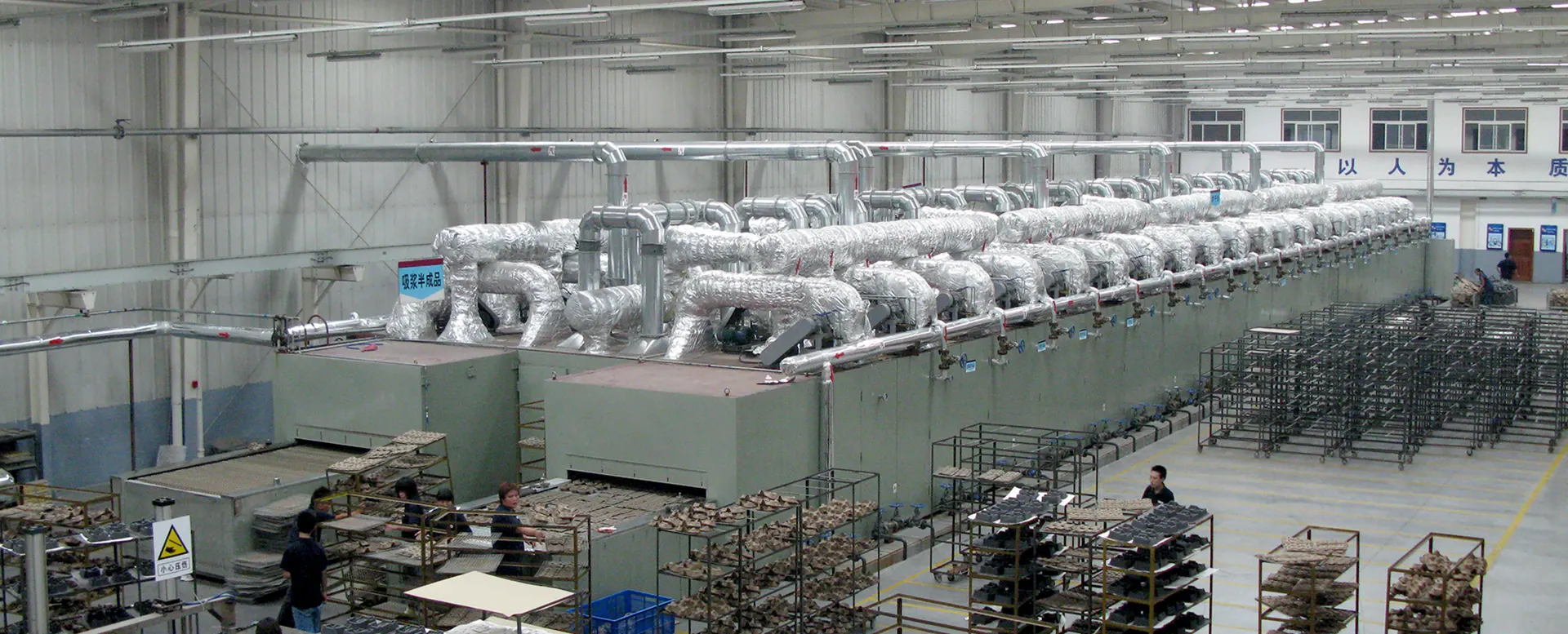 烘干系统可采用多种加热方式,包括燃煤、木材、天然气或电力。其目的是烘干成型,确保其坚固耐用,随时可用。用于此目的的干燥隧道主要有两种:土木工程烘干隧道和钢结构烘干隧道。